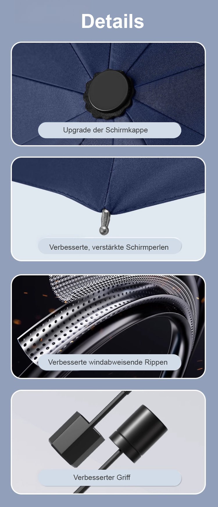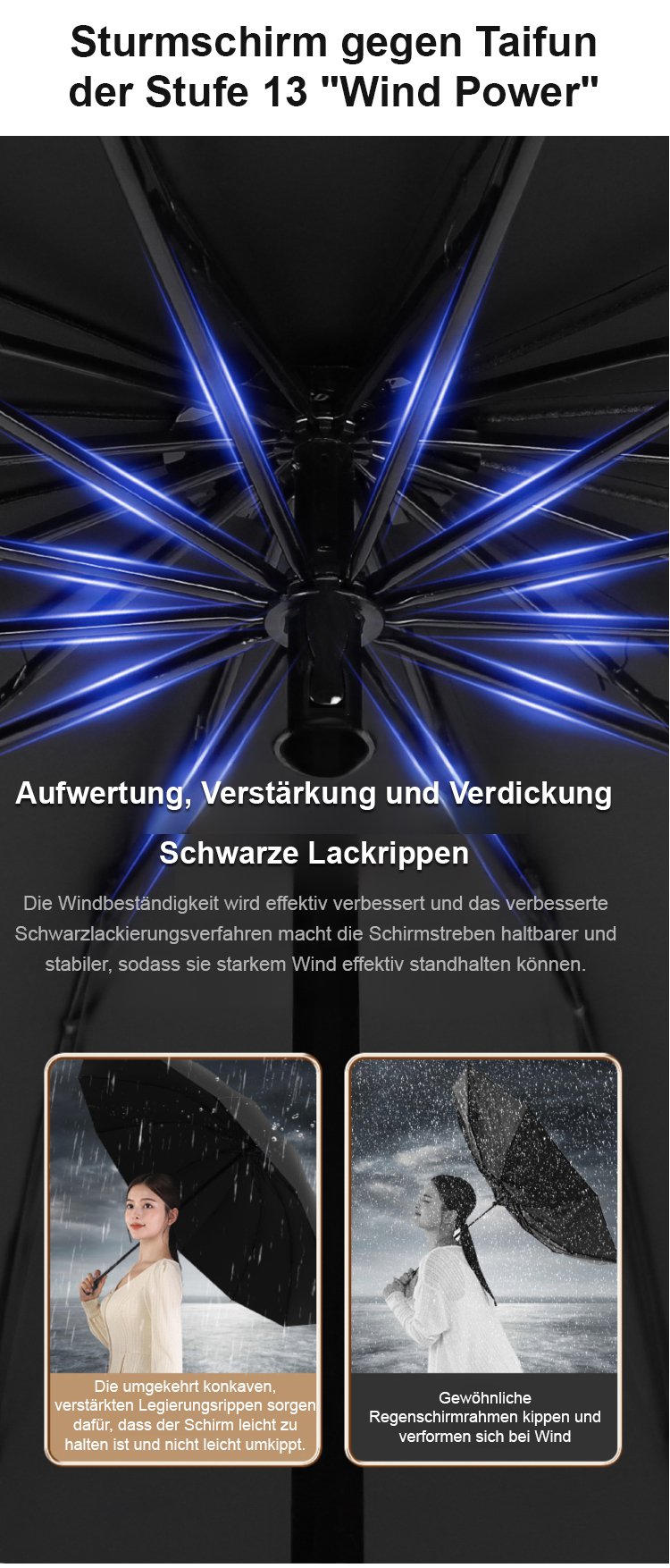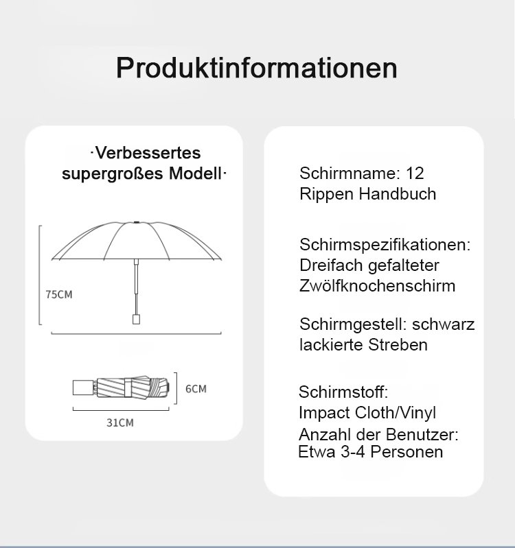 【1,3 m sturmfeste 12-Rippen】vollautomatischer Vinyl-Sonnen- und Regen-Schirm